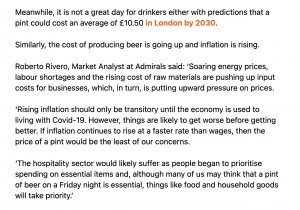 As we touched on further up,, we ran a successful campaign explaining inflation in a pretty unconventional way and it popped off. We researched the current average price of a pint in 25 cities across the UK and how much it’s set to rise every year until 2030. The story went viral and it was picked up by national and regional websites across the UK, all because we took a bit of initiative and thought outside the box.