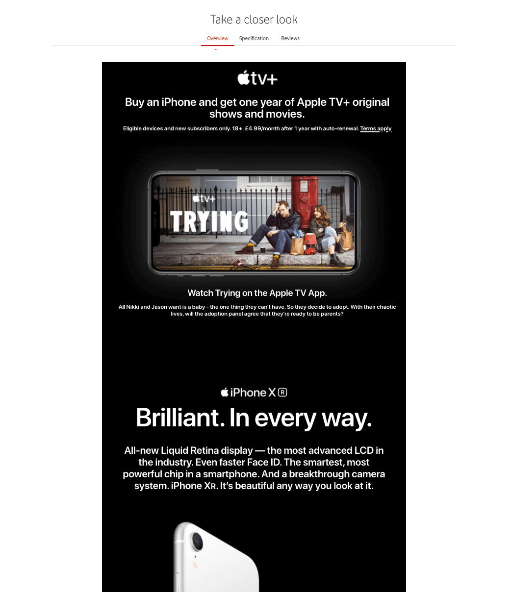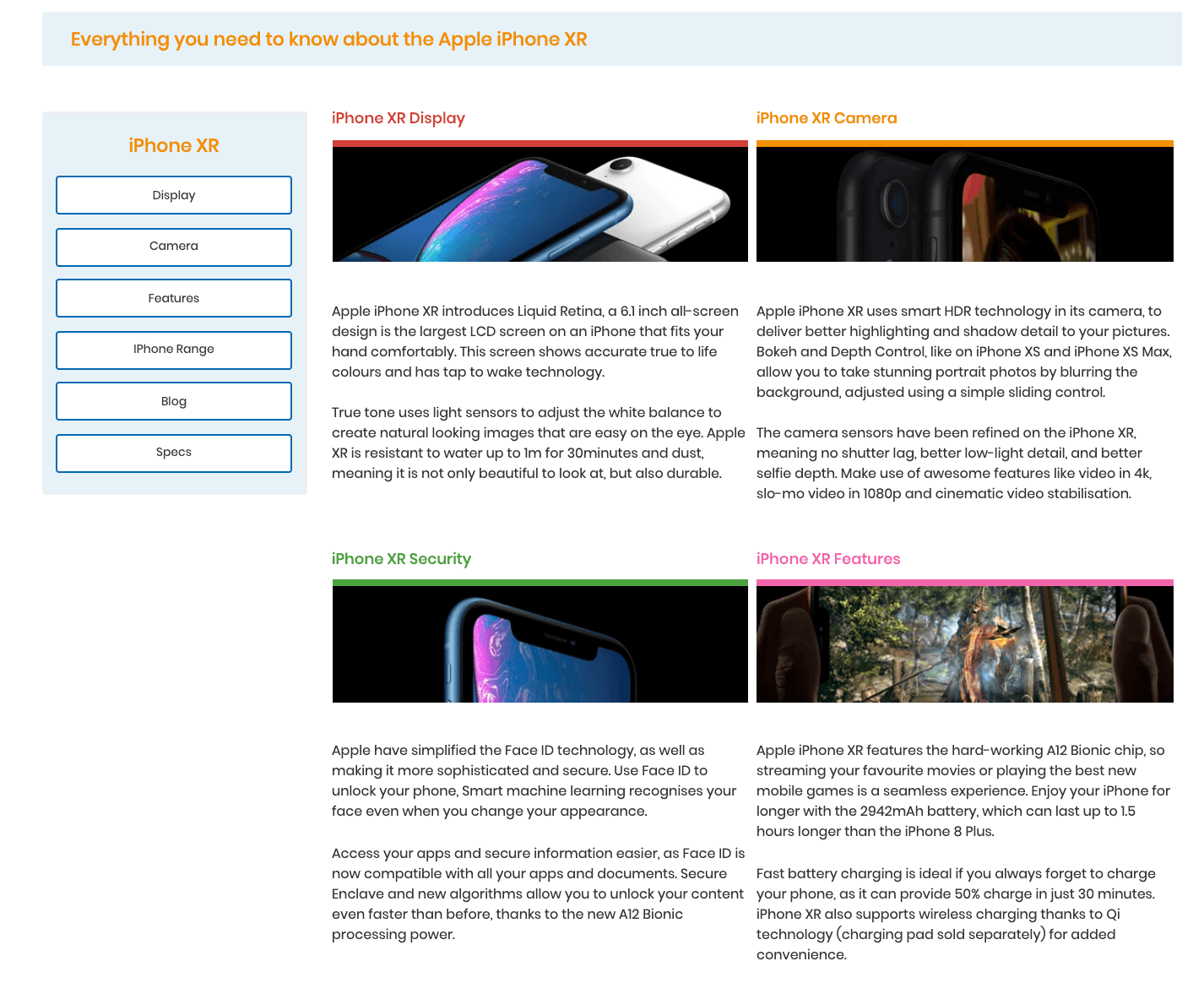 Here is an example from Vodafone, who have exclusively relied on information provided by Apple, which has been duplicated across the web, on their iPhone XR page.