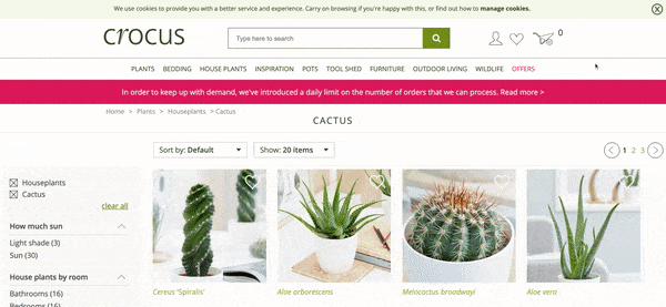 Crocus.co.uk, a huge website which sells plants, is an example of where their “Cactus Plants” page is lacking content, especially copy, thus also lacking the topical relevance for Google to rank this for related keywords.
