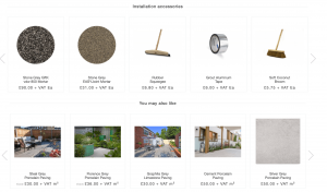 A related product and accessories section on your product pages works in the same way, for instance, the example below is taken from paving slabs product page which offers extras for installations and other related products if the user isn’t fully satisfied.